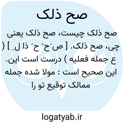 صح ذلک. [ ص َح ْ ح َ ذا ل ِ ] ( ع جمله فعلیه ) درست است این. این صحیح است: