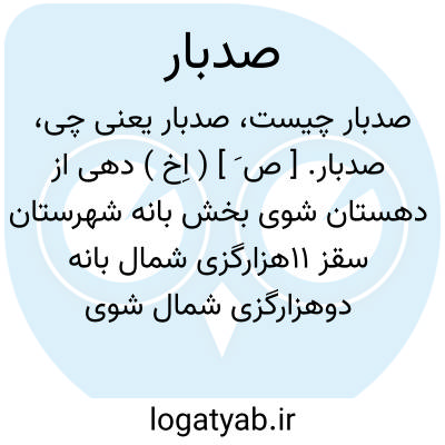 صدبار. [ ص َ ] ( اِخ ) دهی از دهستان شوی بخش بانه شهرستان سقز 11هزارگزی شمال بانه دوهزارگزی شمال شوی، کوهستانی سردسیر. سکنه 180 تن. آب آن از چشمه. محصول آنجا غلات، توتون، کتیرا. شغل اهالی زراعت و گله داری. راه مالرو دارد. ( از فرهنگ جغرافیایی ایران ج 5 ).