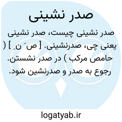 صدرنشینی. [ ص َ ن ِ ] ( حامص مرکب ) در صدر نشستن. رجوع به صدر و صدرنشین شود.