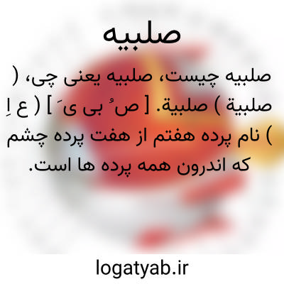( صلبیة ) صلبیة. [ ص ُ بی ی َ ] ( ع اِ ) نام پرده هفتم از هفت پرده چشم که اندرون همه پرده ها است. ( غیاث اللغات ). طبقه ای از هفت طبقه چشم که منشاء آن اطراف غشاء صلب دماغی است که بر پشت عصبه مجوفه است.