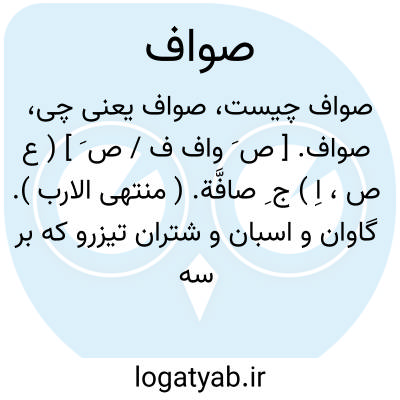 صواف. [ ص َوْ وا ] ( ع ص، اِ ) پشم فروش. ( مهذب الاسماء ) ( اقرب الموارد ). ج، صوافون.