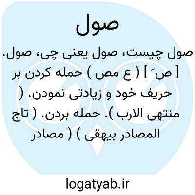 صول. [ ] ( ع اِ ) لقب پادشاه جرجان است. ( تاریخ الخلفاء سیوطی ص 264 ). لقب عام ملوک دهستان. ( آثار الباقیه از یادداشت بخط مؤلف ).