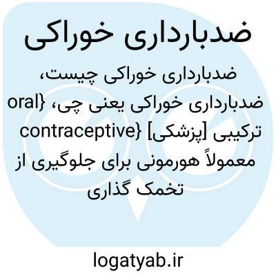 {oral contraceptive} [پزشکی] ترکیبی معمولاً هورمونی برای جلوگیری از تخمک گذاری و ممانعت از بارداری که به صورت خوراکی مصرف می شود