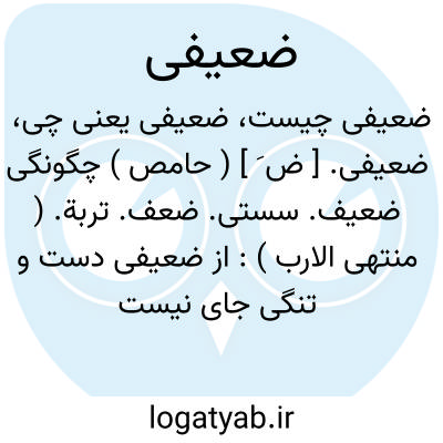ضعیفی. [ ض َ ] ( حامص ) چگونگی ضعیف. سستی. ضعف. تربة. ( منتهی الارب ):