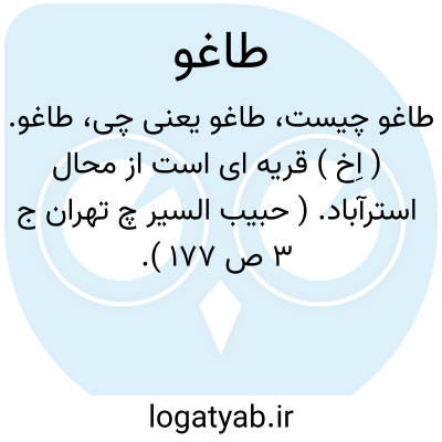 طاغو. ( اِخ ) قریه ای است از محال استرآباد. ( حبیب السیر چ تهران ج 3 ص 177 ).