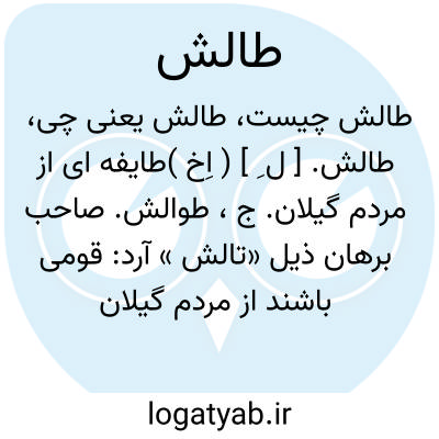 طالش. [ ل ِ ] ( اِخ )طایفه ای از مردم گیلان. ج، طوالش. صاحب برهان ذیل «تالش » آرد: قومی باشند از مردم گیلان و در حاشیه آن بقلم دکتر معین چنین است: تالش بقول بعضی مبدل و محرف «کادوس » است و آن قومی بود که در زمان باستان بس انبوه بودند و در کوهستان شمالی ایران نشیمن داشتند و چون بارها به گردنکشی برخاستند و با پادشاهان هخامنشی از در نافرمانی درآمدند از اینجا نام ایشان در تاریخها آمده و امروز مترجمان کادوش را که تلفظ صحیح آن است «کادوس » نویسند. جایگاهی که برای کادوشان در تاریخها یاد کرده اند امروز منطبق با جایگاه تالشان میباشد. رجوع کنید به مقالات کسروی ج 1 ص 180 و نامهای شهرها و دیه ها تألیف وی دفتر یکم و رجوع به تاریخ زندیه ج 1 ص 78 تألیف دکتر هدایتی و طالش دولاب شود.