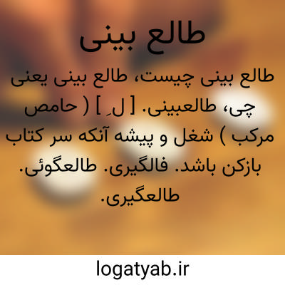 طالعبینی. [ ل ِ ] ( حامص مرکب ) شغل و پیشه آنکه سر کتاب بازکن باشد. فالگیری. طالعگوئی. طالعگیری.