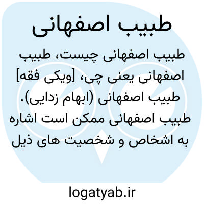 [ویکی فقه] طبیب اصفهانی (ابهام زدایی). طبیب اصفهانی ممکن است اشاره به اشخاص و شخصیت های ذیل باشد: • ابراهیم شاه طبیب اصفهانی، از اطبای اصفهانی و از وابستگان به سلسله دراویش در قرن دهم هجری• محمدباقر حسینی طبیب اصفهانی، محمدباقر طبیب اصفهانی، خطاط نسخ نویس در اصفهان• محمدباقر طبیب پوده ای سمیرمی اصفهانی، میرزامحمّدباقر طبیب، طبیب حاذق و ماهر اصفهانی• محمدباقر بن محمدحسین طبیب اصفهانی، از اطباء حاذق قرن یازدهم هجری اصفهان• سیدمحمدباقر طبیب اصفهانی، از اطباء معروف اصفهان در اواخر قرن سیزدهم هجری• محمداسماعیل طبیب اصفهانی، از اطبّای معروف در قرن سیزدهم هجری در اصفهان• اسماعیل طبیب اصفهانی، از اطبّای حاذق عهد صفویّه در اصفهان• محمداشرف بن حکیم محمد طبیب اصفهانی، از فضلا و دانشمندان اصفهان در قرن یازده هجری
