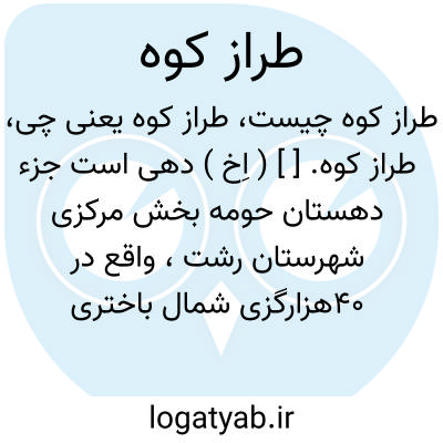 طراز کوه. [ ] ( اِخ ) دهی است جزء دهستان حومه بخش مرکزی شهرستان رشت، واقع در 40هزارگزی شمال باختری رشت و 3هزارگزی شمال شوسه رشت به فومن. جلگه، معتدل مرطوب مالاریائی با 447 تن سکنه. آب آن از استخر. محصول آنجا برنج، توتون، سیگار و صیفی. شغل اهالی زراعت. راه آن مالرو است. ( از فرهنگ جغرافیائی ایران ج 2 ).