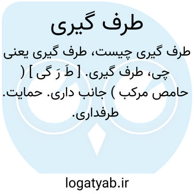 طرف گیری. [ طَ رَ گی ] ( حامص مرکب ) جانب داری. حمایت. طرفداری.