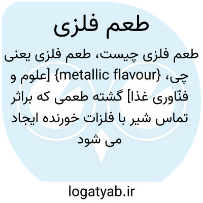 {metallic flavour} [علوم و فنّاوری غذا] گشته طعمی که براثر تماس شیر با فلزات خورنده ایجاد می شود