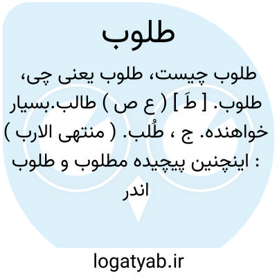 طلوب. [ طَ ] ( ع ص ) طالب.بسیار خواهنده. ج، طُلب. ( منتهی الارب ):