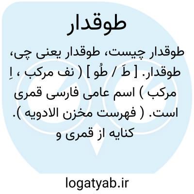 طوقدار. [ طَ / طُو ] ( نف مرکب، اِ مرکب ) اسم عامی فارسی قمری است. ( فهرست مخزن الادویه ). کنایه از قمری و فاخته و کبوتر و مانند آن. ( آنندراج ). قمری را نیز گویند. ( برهان ):