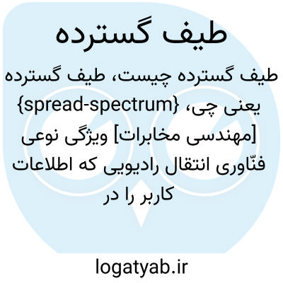 {spread-spectrum} [مهندسی مخابرات] ویژگی نوعی فنّاوری انتقال رادیویی که اطلاعات کاربر را در پهنای باندی بسیار فراخ تر از پهنای باند لازم می گنجاند