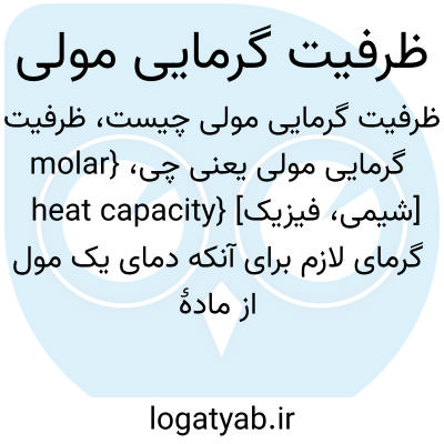 {molar heat capacity} [شیمی، فیزیک] گرمای لازم برای آنکه دمای یک مول از مادۀ مورد نظر به اندازۀ یک درجۀ کلوین افزایش یابد