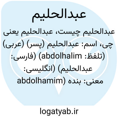 اسم: عبدالحلیم (پسر) (عربی) (تلفظ: abdolhalim) (فارسی: عبدالحليم) (انگلیسی: abdolhamim)