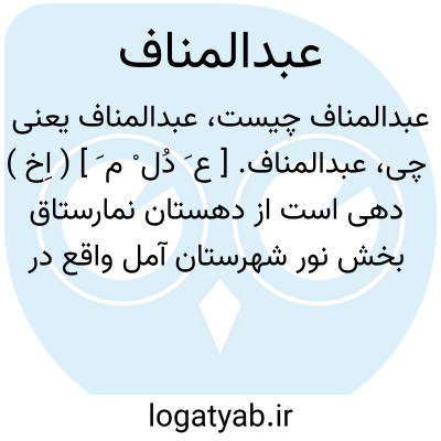 عبدالمناف. [ ع َ دُل ْ م َ ] ( اِخ ) دهی است از دهستان نمارستاق بخش نور شهرستان آمل واقع در 47هزارگزی جنوب باختری آمل و 11هزارگزی باختر شوسه آمل به لاریجان. کوهستانی و سردسیر است و 70 تن سکنه دارد. زبان آنها مازندرانی فارسی است. آب آن از چشمه تأمین میشود. محصولاتش غلات و لبنیات است. شغل اهالی زراعت و گله داری است. راه مالرو دارد.زیارتگاهی بنام عبدالمناف که بنای آن قدیمی است در این ده واقع است. ( از فرهنگ جغرافیائی ایران ج 3 ).
