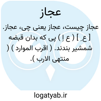 عجاز. [ ع ِ ] ( ع اِ ) پی که بدان قبضه شمشیر بندند. ( اقرب الموارد ) ( منتهی الارب ).
