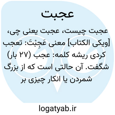 شگفت. آن حالتی است که از بزرگ شمردن یا انکار چیزی بر شخصی عارض می‏شود. راغب گفته حالتی است که از جهل بعلت شی‏ء عارض می‏شود لذا بعضی حکما گفته‏اند: تعجّب آن است که علتش غیر معلوم باشد و لذا گفته شده که تعجّب بر خداوند صحیح نیست زیرا او علّام غیوب است. بلکه تو از انکار آنها تعجّب کردی و آنها از روی بی‏اعتنائی یا عدم علم تو را مسخره می‏کنند..