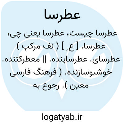 عطرسا. [ ع ِ ] ( نف مرکب ) عطرسای. عطرساینده. || معطرکننده. خوشبوسازنده. ( فرهنگ فارسی معین ). رجوع به عطرسای شود. || ( اِ مرکب ) سنگی که به روی آن عطر می سایند. ( ناظم الاطباء ).