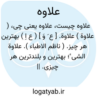 ( علاوة ) علاوة. [ ع َ وَ ] ( ع اِ ) بهترین هر چیز. ( ناظم الاطباء ). علاوة الشی ٔ؛ بهترین و بلندترین هر چیزی. || ( اِمص ) بلندی. ( منتهی الارب ).