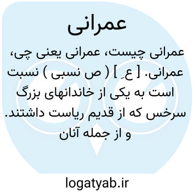 عمرانی. [ ع ِ ] ( ص نسبی ) نسبت است به یکی از خاندانهای بزرگ سرخس که از قدیم ریاست داشتند. و از جمله آنان ابوالحسن علی بن محمد عمرانی و ابوبکر محمدبن قاسم بن عمران عمرانی بوده اند. ( از اللباب فی تهذیب الانساب ). رجوع به علی عمرانی ( ابن محمد... ) و عمرانی ( محمدبن قاسم... ) شود. نام این خاندان را گاهی «عمرانیان » به لفظ جمع بکار برده اند. رجوع به عمرانیان شود.