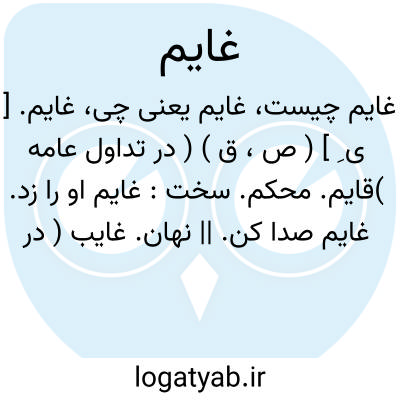 غایم. [ ی ِ ] ( ص، ق ) ( در تداول عامه )قایم. محکم. سخت: غایم او را زد. غایم صدا کن. || نهان. غایب ( در لهجه بعضی نقاط خراسان ).