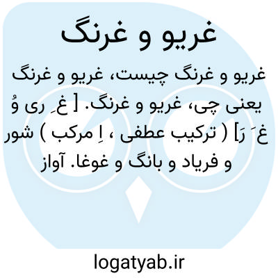 غریو و غرنگ. [ غ ِ ری وُ غ َ رَ] ( ترکیب عطفی، اِ مرکب ) شور و فریاد و بانگ و غوغا. آواز گریه و زاری. ترکیبی است از غریو + و ( عطف ) +غرنگ. رجوع به هریک از این کلمه ها شود: