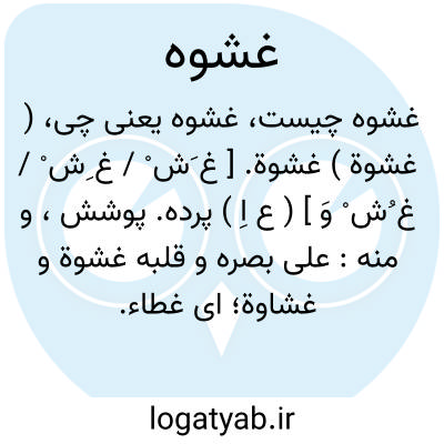 ( غشوة ) غشوة. [ غ َش ْ / غ ِش ْ / غ ُش ْ وَ ] ( ع اِ ) پرده. پوشش، و منه: علی بصره و قلبه غشوة و غشاوة؛ ای غطاء. ( منتهی الارب ) ( از اقرب الموارد ). پوشش. ( مهذب الاسماء ). غشاوة. تاریکی چشم.