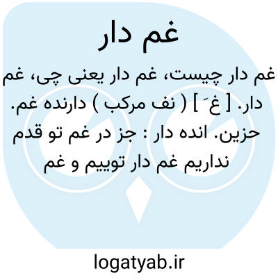 غم دار. [ غ َ ] ( نف مرکب ) دارنده غم. حزین. انده دار: