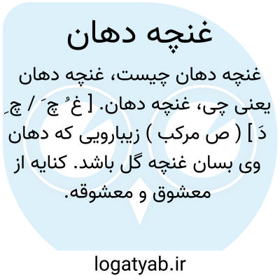 غنچه دهان. [ غ ُ چ َ / چ ِ دَ ] ( ص مرکب ) زیبارویی که دهان وی بسان غنچه گل باشد. کنایه از معشوق و معشوقه. ( از ناظم الاطباء ). از اسماء محبوب. ( آنندراج ):