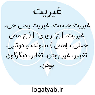 ( مصدر ) ۱ - بینونت دوگانگی تغییر ۲ - مقابل هوهویت است و به چند قسم تقسیم می شود که عبارتند از: غیریت در جنس غیریت در نوع غیریت در فصل و غیریت در عرض.
