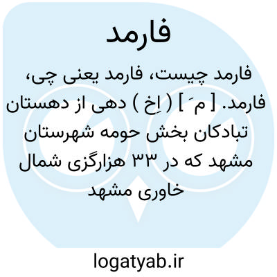 فارمد. [ م َ ] ( اِخ ) دهی از دهستان تبادکان بخش حومه شهرستان مشهد که در 33 هزارگزی شمال خاوری مشهد و چهارهزارگزی شمال باختری تبادکان در دامنه ای واقع است. جایی معتدل و دارای 37 تن سکنه است.آب آنجا از چشمه تأمین میشود و محصول عمده آن غلات و شغل اهالی زراعت و مالداری است. راه مالرو دارد. ( از فرهنگ جغرافیائی ایران ج 9 ). آن را فارمذ ( با ذال نقطه دار ) نیز گفته اند. رجوع به معجم البلدان شود.