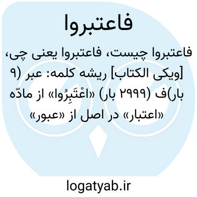 «اعْتَبِرُوا» از مادّه «اعتبار» در اصل از «عبور» گرفته شده که به معنای گذشتن از چیزی به سوی چیز دیگر است و این که به اشک چشم «عبرة» گفته می شود، به خاطر عبور قطرات اشک از چشم است. و «عبارت» را از این رو «عبارت» می گویند که مطالب و مفاهیم را از کسی به دیگری منتقل می کند; و اطلاق «تعبیر خواب» بر تفسیر محتوای آن به خاطر این است که، انسان را از ظاهر به باطن آن منتقل می سازد. و به همین مناسبت، به حوادثی که به انسان پند می دهد «عبرت» می گویند; چرا که انسان را به یک سلسله تعالیم کلّی رهنمون می گردد و از مطلبی به مطلب دیگر منتقل می کند.