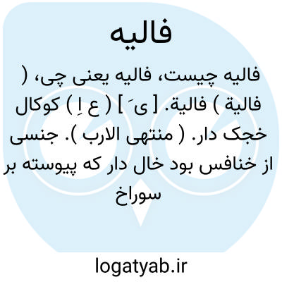 ( فالیة ) فالیة. [ ی َ ] ( ع اِ ) کوکال خجک دار. ( منتهی الارب ). جنسی از خنافس بود خال دار که پیوسته بر سوراخ مارها بود. ( اقرب الموارد ). || فالیةالافاعی؛ اوائل شر و بدی. ( منتهی الارب ).