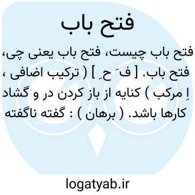 فتح باب. [ ف َ ح ِ ] ( ترکیب اضافی، اِ مرکب ) کنایه از باز کردن در و گشاد کارها باشد. ( برهان ):