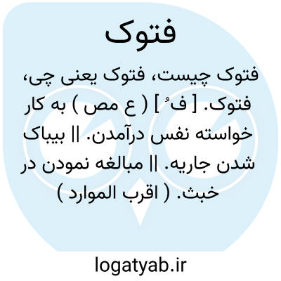 فتوک. [ ف ُ ] ( ع مص ) به کار خواسته نفس درآمدن. || بیباک شدن جاریه. || مبالغه نمودن در خبث. ( اقرب الموارد ) ( منتهی الارب ). || تندی کردن به کسی. || ناگهان کشتن کسی را. || فرصت جستن برای کشتن کسی و کشتن اورا. || الحاح در چیزی. ( اقرب الموارد ).