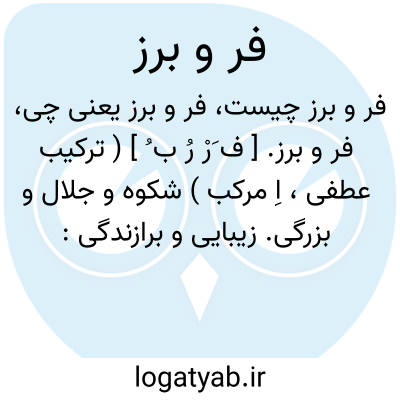 فر و برز. [ ف َرْ رُ ب ُ ] ( ترکیب عطفی، اِ مرکب ) شکوه و جلال و بزرگی. زیبایی و برازندگی: