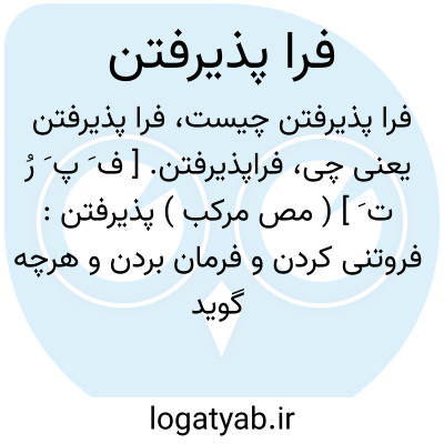 فراپذیرفتن. [ ف َ پ َ رُ ت َ ] ( مص مرکب ) پذیرفتن: فروتنی کردن و فرمان بردن و هرچه گوید فراپذیرفتن. ( تذکرةالاولیاء عطار ). رجوع به فرا شود.