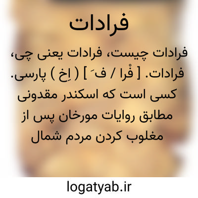 فرادات. [ فْرا / ف َ ] ( اِخ ) پارسی. کسی است که اسکندر مقدونی مطابق روایات مورخان پس از مغلوب کردن مردم شمال ایران، او را به حکومت آنها گماشت. ( از ایران باستان ج 2 ص 1647 ). فرادات پیش از آنکه مطیع اسکندر شود حاکم تپوریها بود. ( از ایران باستان ج 2 ص 1644 ).