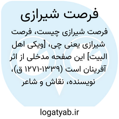 (1339-1271 ق)، نویسنده، نقاش و شاعر متخلص به فرصت. ملقب به میرزا آقا و فرصت الدوله. در شیراز به دنیا آمد. در همان شهر علوم مداوله از جمله علم صرف وعلم نحو، علم معانی و علم بیان و منطق و حکمت را تحصیل کرد و از شیخ مفید بیش از دیگر اساتیدش دانش آموخت.