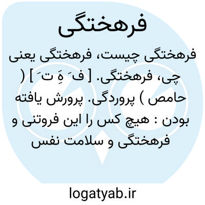 فرهختگی. [ ف َ هَِ ت َ ] ( حامص ) پروردگی. پرورش یافته بودن: هیچ کس را این فروتنی و فرهختگی و سلامت نفس و سماجت طبع نیست که شتر راست. ( مرزبان نامه ). رجوع به فرهختن و فرهخته شود.