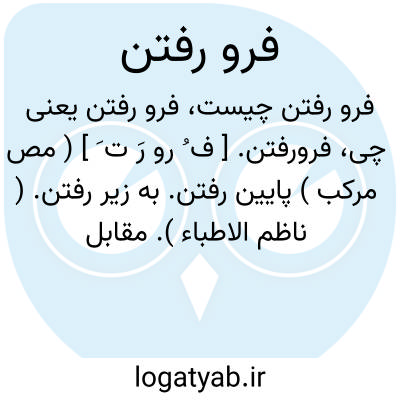 فرورفتن. [ ف ُ رو رَ ت َ ] ( مص مرکب ) پایین رفتن. به زیر رفتن. ( ناظم الاطباء ). مقابل بررفتن: