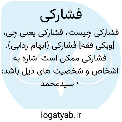 [ویکی فقه] فشارکی (ابهام زدایی). فشارکی ممکن است اشاره به اشخاص و شخصیت های ذیل باشد: • سیدمحمد طباطبایی فشارکی، از علمای جلیل القدر شیعه در قرن ۱۳ قمری• محمدباقر فشارکی اصفهانی، از علمای مجاهد ایران در قرن سیزدهم و چهاردهم هجری