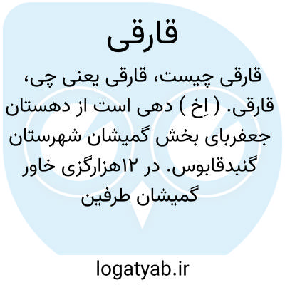 قارقی. ( اِخ ) دهی است از دهستان جعفربای بخش گمیشان شهرستان گنبدقابوس. در 12هزارگزی خاور گمیشان طرفین رودخانه گرگان و دردشت واقع و هوای معتدل مرطوب مالاریایی دارد و دارای 2000 تن سکنه است. آب آن از رودخانه گرگان و محصولات آن غلات، صیفی، حبوبات و لبنیات است. شغل اهالی زراعت و گله داری و صنایع دستی زنان قالیچه و گلیم بافی و نمدمالی است. دبستان و راه فرعی و پل چوبی روی رودخانه گرگان دارد. ( از فرهنگ جغرافیایی ایران ج 3 ).
