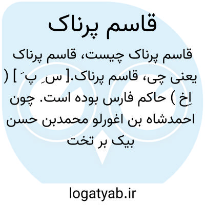 قاسم پرناک.[ س ِ پ َ ] ( اِخ ) حاکم فارس بوده است. چون احمدشاه بن اغورلو محمدبن حسن بیک بر تخت سلطنت آذربایجان جلوس کرد مقرراتی وضع نمود که باعث مخالفت ابیه سلطان و قاسم پرناک گردید. و این دو احمد شاه را سرانجام به قتل رسانیدند. ( حبیب السیر چ خیام ج 4 ص 443 و 446 ).