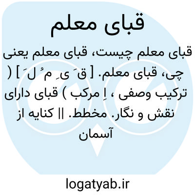 قبای معلم. [ ق َ ی ِ م ُ ل َ ] ( ترکیب وصفی، اِ مرکب ) قبای دارای نقش و نگار. مخطط. || کنایه از آسمان دنیا. فلک ِ قمر.