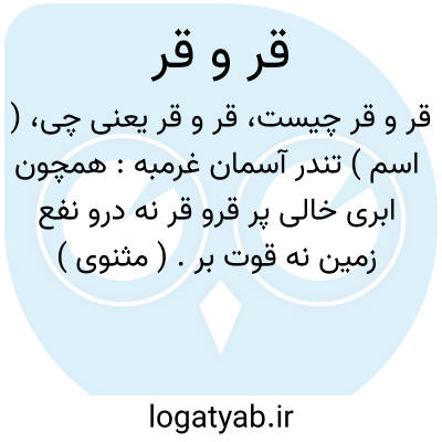 ( اسم ) تندر آسمان غرمبه: همچون ابری خالی پر قرو قر نه درو نفع زمین نه قوت بر. ( مثنوی )