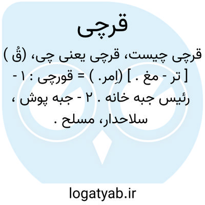 (قُ ) [ تر - مغ. ] (اِمر. ) = قورچی: ۱ - رئیس جبه خانه. ۲ - جبه پوش، سلاحدار، مسلح.