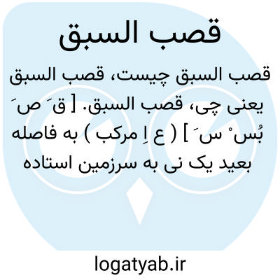 ( اسم ) ۱- نیی که در انتهای مسیر مسابقه اسب سواری نصب کنند و سوراران از مبدا باتفاق یکدیگر بسوی آن اسب تازند. اول کسی که که آن نی را بردارد برنده مسابقه شناخته میشود. یا قصب السبق بدن. ۱ - سبقت گرفتن در مسابقه اسب دوانی ۲ - پیش افتادن سبقت گرفتن: دوستی از جمله حمله علم... که در عیون علوم و فنون آداب از اکفار و اقران قصب السبق برده بود.... یا قصب السبق ربوندن. ۱ - سبقت گرفتن در مسابقه اسب دوانی ۲ - پیش افتادن سبقت گرفتن: در آن میدان که سه طفب بنان را برنی پاره سواری کردی قصب السبق براعت از همه بربودی.